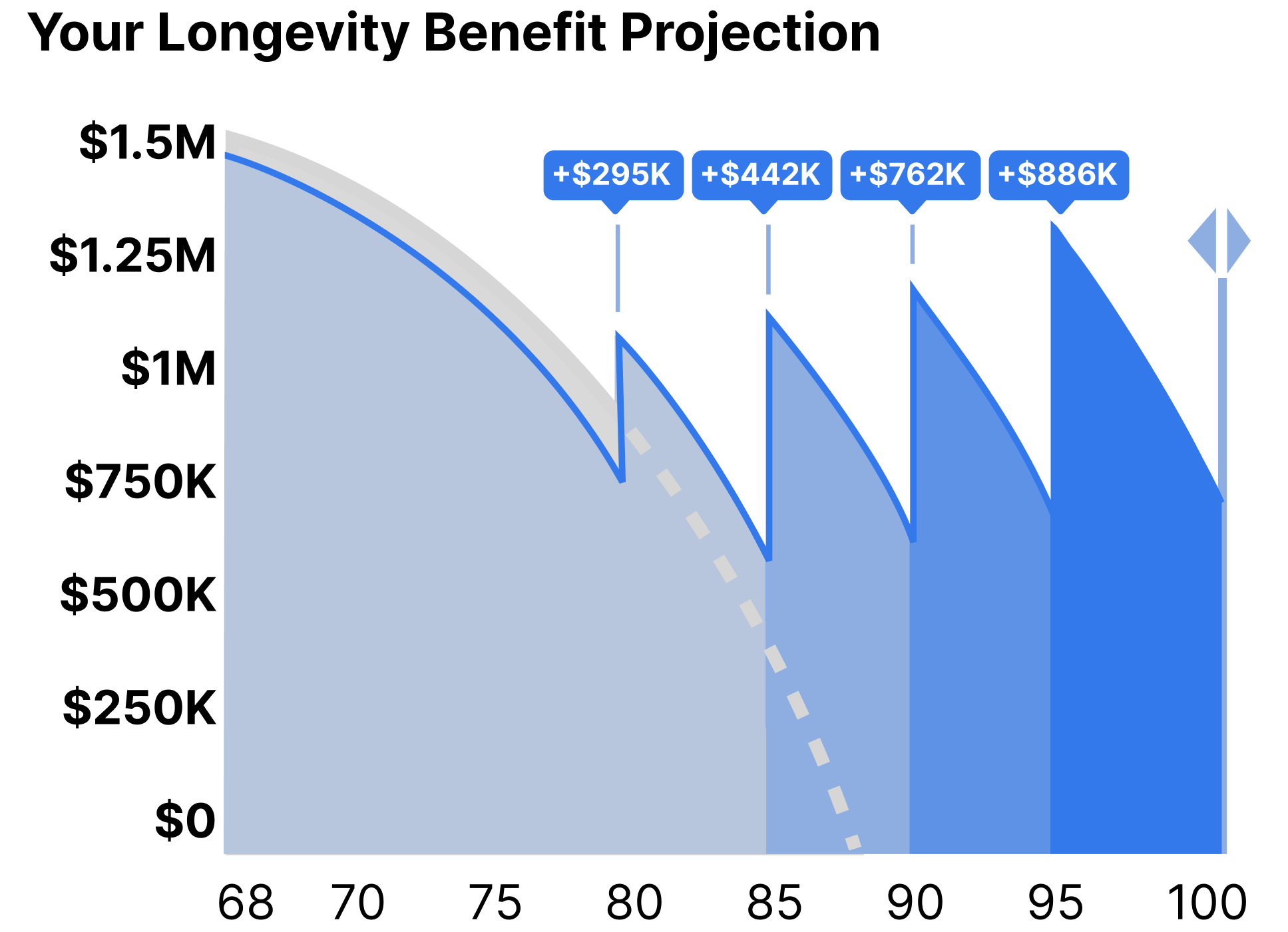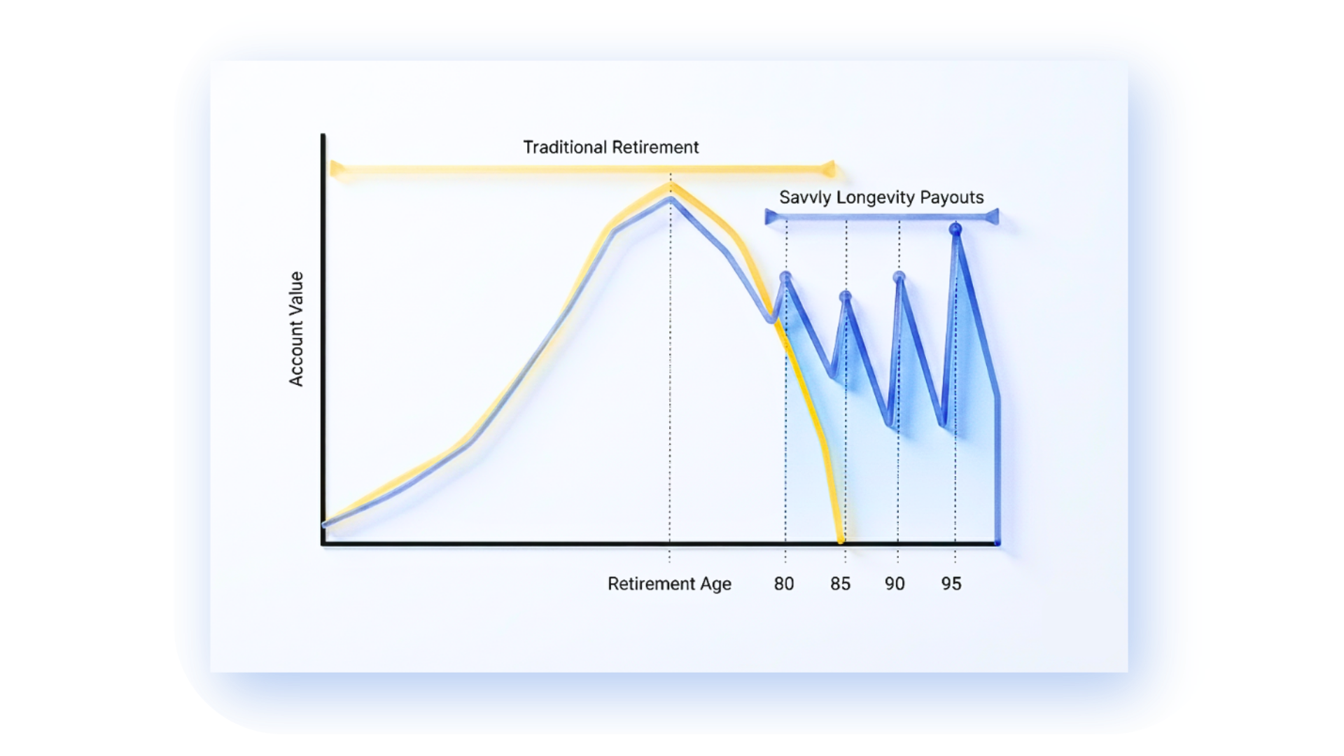 Savvly is a revolutionary benefit that grows with the S&P 500 and distributes proceeds to investors when they reach milestone ages to unlock excess cash for living longer.